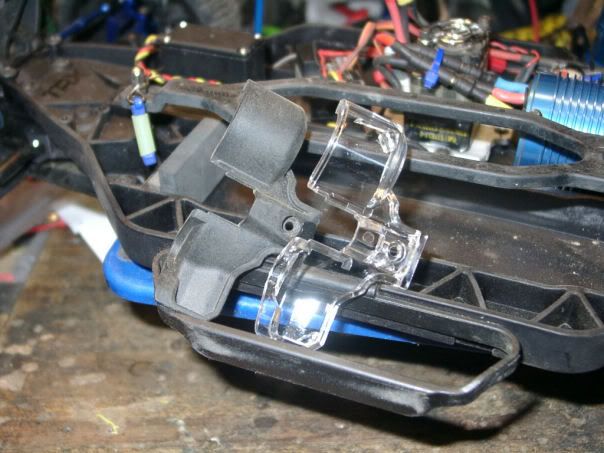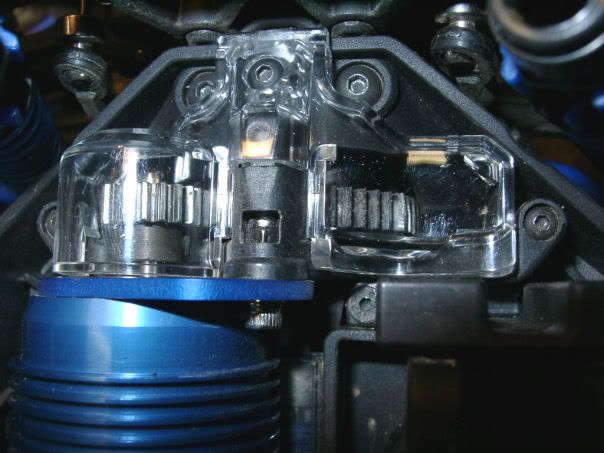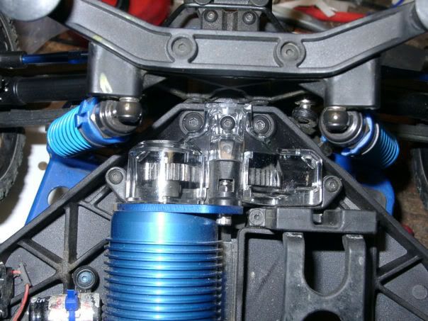 It won't make your truck faster or stronger but this optional Traxxas part is very cool. It is the optional clear gear cover and besides looking cool, it allows you to see if there are rocks, dirt, etc. in your pinion/spur gears. I have sealed both ends of the driveline (heat shrink on the driveshaft, plugged the water drain holes and the foam plug for the diff hole but still dirt, sand and rocks get into the gears. Now I can take a quick look and see if I need to get in there and clean out the junk. http://i142.photobucket.com/albums/r...3/06010001.jpg http://i142.photobucket.com/albums/r...3/06010009.jpg http://i142.photobucket.com/albums/r...3/06010006.jpg |