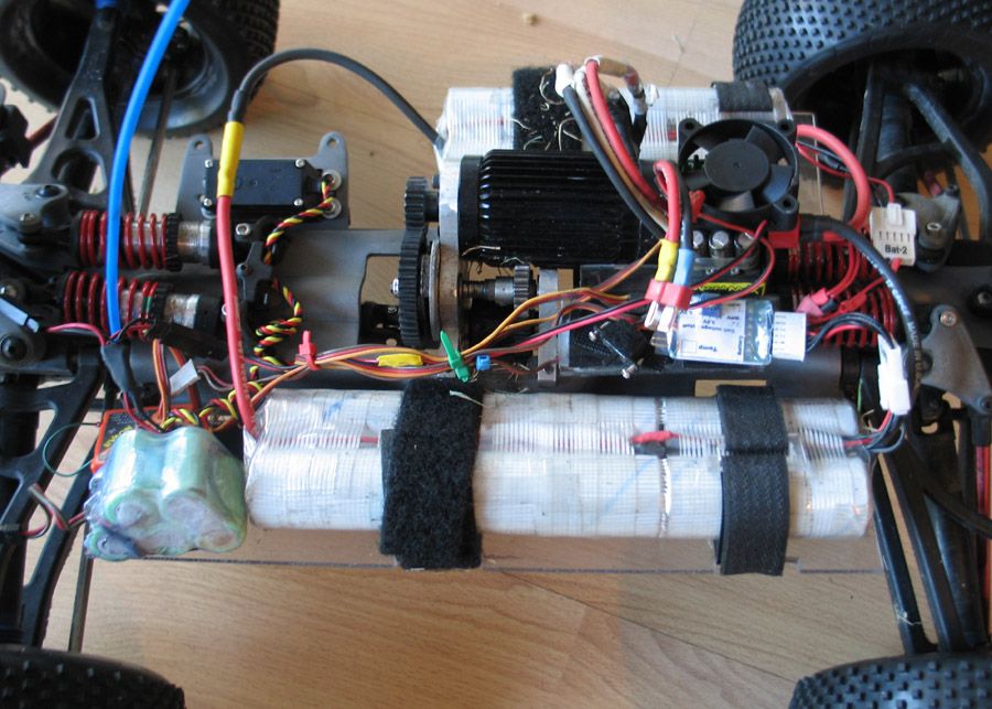 J/K. Good job! How much runtime do you get on that setup? I was thinking of going with a 8 or 9XL with 6s2p on my Revo, but still on the fence about it. The fact that the MM thermals so quick, but then the addition of a simple fan makes it run that much cooler makes think a larger heatsink would do wonders. Too bad the current heatsink wasn't epoxied on the FETs... |