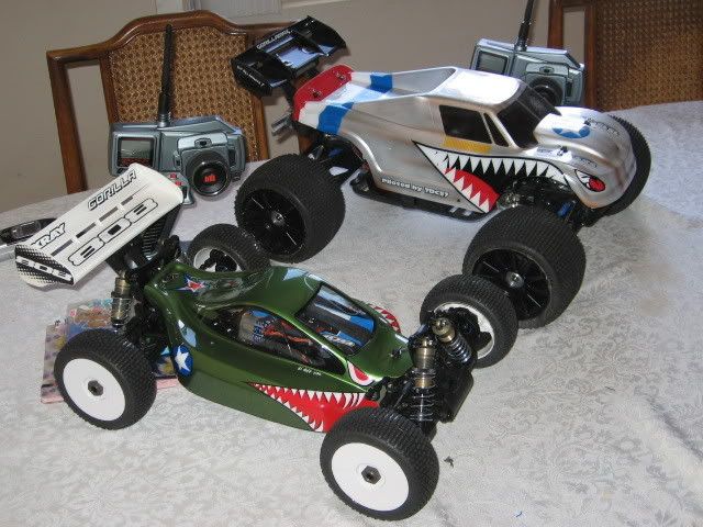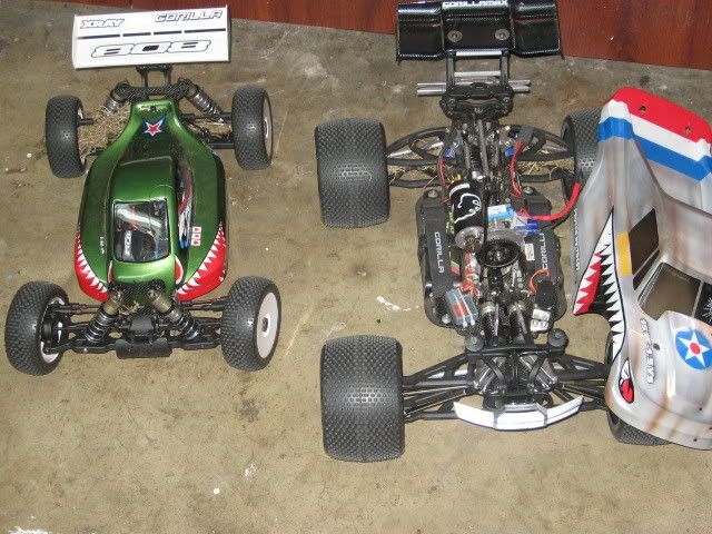 I learned a few things today gentlemen!. Bad news: I really need to learn how to drive on a track!!! I suck!! :yes: The good news is I cant go anywhere but up!. :yipi: It got so bad the owner came over introduced himself, verified that I’ve never been at a track (daa…) and asked if he could drive my buggy and proceeded to rip! up the track, jumped all doubles and a huge table top and another jump (12’h x 20’l) track time 21sec (bastard!) :grrrrrr: he looked at me and proceeded to give my a few pointers, :sarcastic: apparently I was hurting his track??? We both laughed!..:mdr: (I sucked so bad) they were actually worried about the damage / chunks I was tacking out of the track on my landings that they came over and help me!. The entire time I'm noise diving my buggy into the face on the following jumps (refuse to roll over them!) my timing and speed were just a little off and I did end up in the wrong lane quite a few times and I ended up jumped it off the track a few times getting it caught in the safety netting, (both trucks) :gasp: it was kind of funny to see the expression on the people faces outside watching in as it’s coming straight at them etc.. :angel: But the beside the point!.. P.S. I also learned that my GEVO drives over most 12- 15th scale buggies like they are speed bumps (happen 3 times) and it’s real hard for them to pass or bump me around!.. (hhhhaaaaa) :intello: Moving on. So after two hours of beating the “holly crap” out of both of my trucks, I was finally able to gaining enough skill to at least make it around in my lane in under 42!!. (Who’s the man!) Sure the average time is 28 sec, but my first few times I think it took me (87,92,84). OOOoo reality hearts!.. :lol: I also learned that my 808 can take a monsteris beating!! :party: (Endowing, cart wheeling, flipping, etc) you name it this buggy did it all in stride, ran like a champ and was wiser for it.:) I got home and it looks good!, everything is where it should be. All and all it was a fun day out at the track.. |