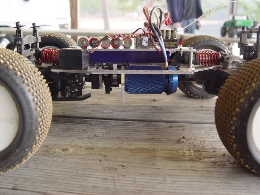 The bomb-proof chassis looks very intersting but without the ability to place packs on either side of the chassis, for weight balance, the G2R has several advantages for racing. 1. The G2R has a very low CG (The lower plate of the G2R is as low as you can go without sacrificing stock ground clearance.) Anything lower than the G2R will probably constantly bottom out on jumps. 2. The G2R has the ability to mount emaxx or tmaxx trannies (As well as the slipperential) 3. The G2R has many motor mount options (center, off center, left, or right) I like the innovation of the bomb-proof chassis but I think its weak links are the lack or option of a side-by-side pack config and motor mount options. There's definetly potential there though. I also find it a bit complicating that companies do not have a standard diff fluid weight measurement. I use Mugen diff fluid for all my vehicles. The traxxas 100K fluid seems to be less than the Mugen 10K fluid. So when I hear people using 250K or 300K it sounds outrageously high. Mugen 10K works well for me on hardpack dirt, I'd probably go to 30K on loose dirt. |