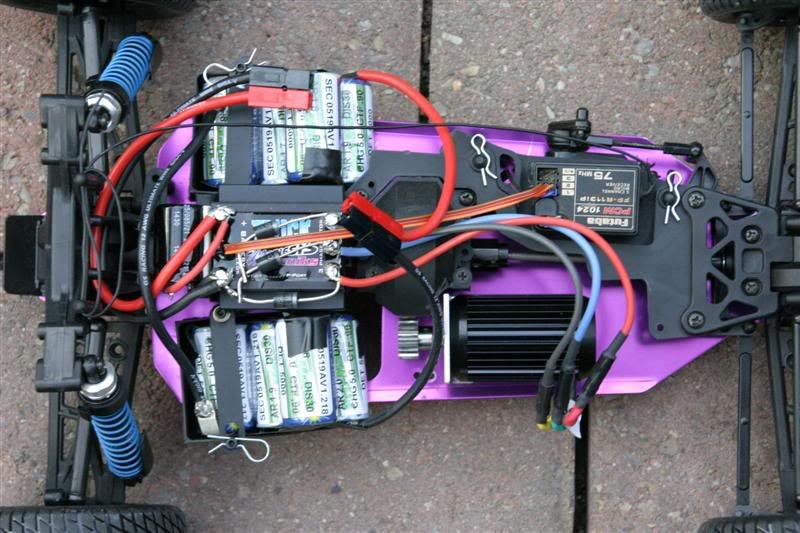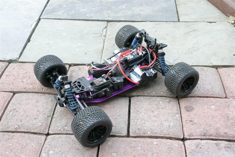 Well it's finally together....or was. Before the first battery pack... http://img.photobucket.com/albums/v2...6419Medium.jpg http://img.photobucket.com/albums/v2...6420Medium.jpg http://img.photobucket.com/albums/v2...6421Medium.jpg http://img.photobucket.com/albums/v2...6422Medium.jpg Aaaand this is after the first pack... http://img.photobucket.com/albums/v2...6424Medium.jpg Full throttle + Water pipe thing sticking out of the lawn = that First impressions: Well, it's FAST. This is my first real brushless other than my SS5800 in my T2. I was going to put the gps on it tomorrow but now I can't. From a dead stop if I nail it it'll veer to the left and I can't keep it straight. It handles pretty well and seems to jump ok off of the tiny jump I had. I'm pretty happy so far. The controller was getting pretty warm though with not even a full pack ~135-140, the motor was maybe 130. I'll probably add fans eventually. It's geared 52/15 right now with the Road Rages. Oh and it's pretty noisy, is that just the sound of mod1 gears? The mesh is good so I think that's just how it is. It needs a few tweaks but overall I think it was a success! :dft012: |