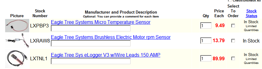 Yup, looks great. I also ordered the "wrap around" temp sensor for the motor, since the V3 can log two temps. I don't see it on tower, but it's on eagletree's site.