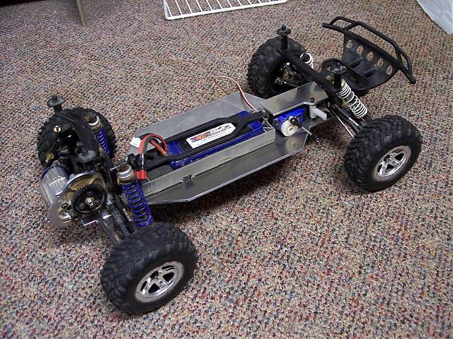 few more pics.... servo isnt mounted yet as i need to make an upper plate with a recess to go over the shock tower, so ill do that tomorrow on the break during my break lol. battery tray isnt mounted in those pics but im doing that right now. and dont have a big enough piece laying around for my rear brace/esc mount/ shocktower brace.... so ill also fix that up tomorrow, i should have it finished tomorrow minus the left mud guard. i cant wait to try it out my only problem wiht this whole conversion is cutting the little outter "lead seal" section off my rx box. but oh well. plus its been raining for 3 days straight now....