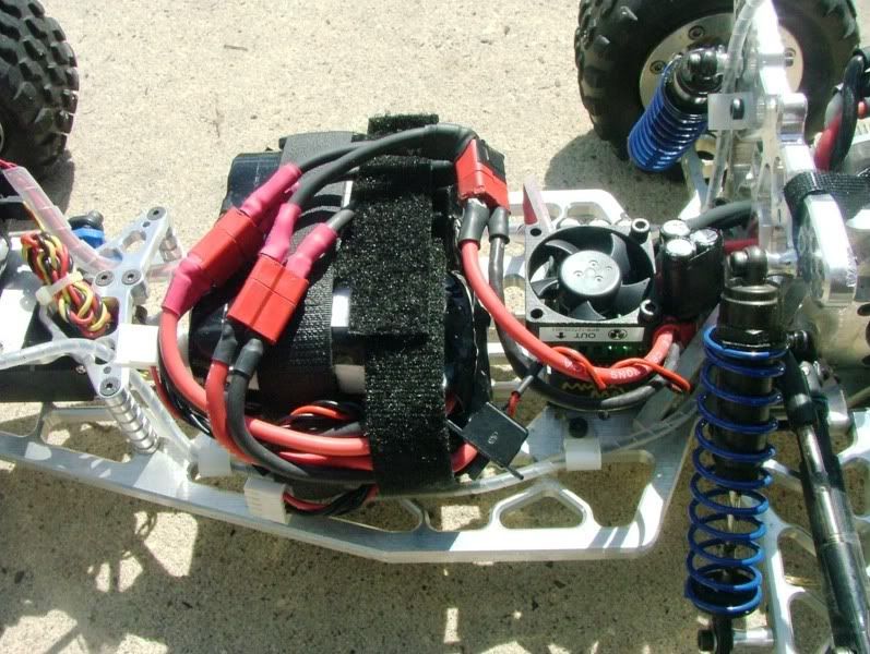I'm waiting for the extended chassis to arrive. Hopefully my cable routing will look better after that hehheheheh. Really hard to fit 6 A123 cells on the current chassis. I'm hoping that the extended chassis will wheelie less and have a better straightline run.