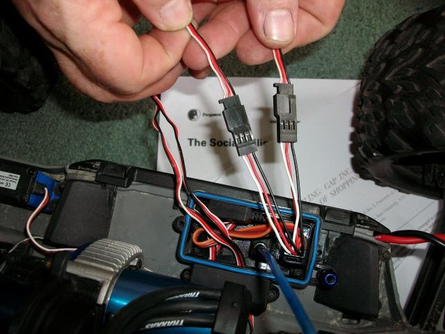 2) Only 1 of the two ESC's red servi wire connects to the RX (either cut one of the red wires on the branches of the y lead or remove red wire from ESC plug