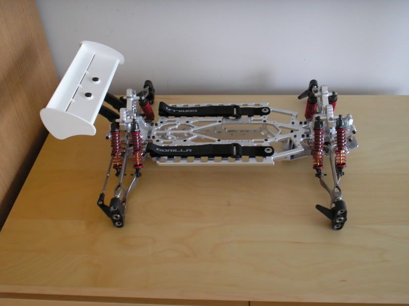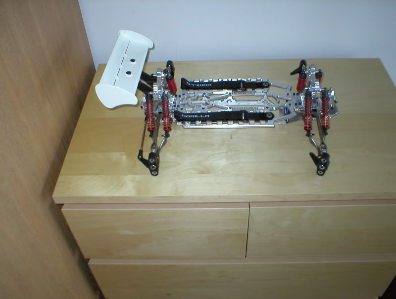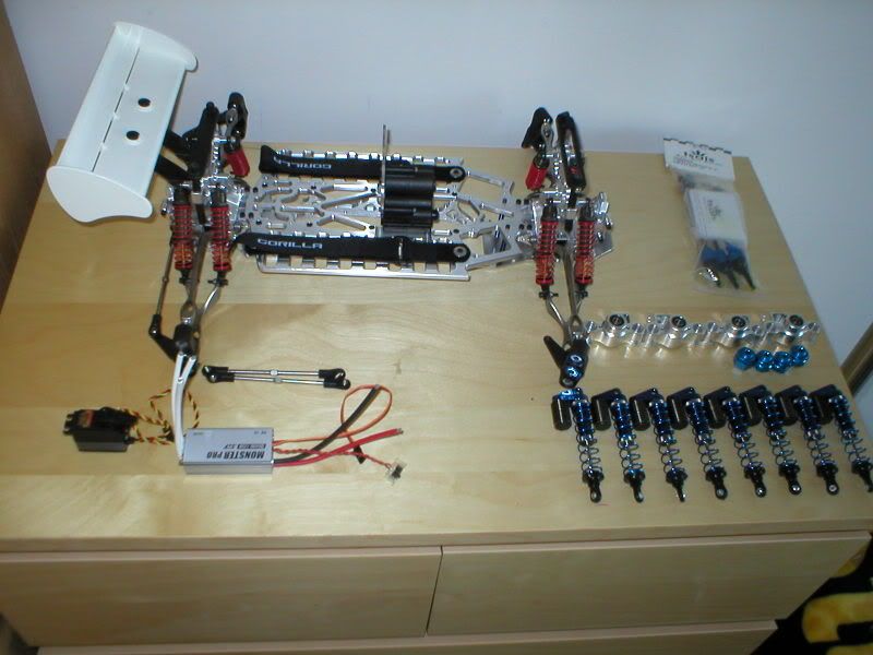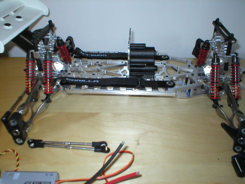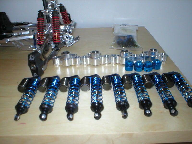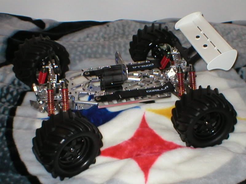 I decided to go with this conversion because of the strength and durability and the looks. It all came down to this conversion or the GorillaMaxx conversion with combo bulks and slipperential. I decided to go with this FLM conversion with hybrids and HB diffs for many reasons. The first reason is because my car is an E-Maxx and I feel my car is suitable to bash and race but more so to bash, so I chose these parts to represent this. (No offense to those of you racers with E-Maxx and the gmaxx chassis because I love to race and I love the look of your car and it will probably keep up with other nitro truggys on the track. Reason two I decided to go with this because it was cheaper I know I already had 600 to start with but it would take a lot of weeks to get the extra stuff that I would need to get the gmaxx conversion ready,( for example 100 bucks more in diffs, 120 more in CVDs, 70 more in knuckles, 80 more on shocks, 20 more on oil and lube, 40 more on skids, 20 more on hinge pins, and a few other small stuff) this stuff would easily equal over 450 extra dollars and with what I chose now I got all of this stuff at the sacrifice of the performance and looks from the gmaxx and slipperential combo. I know to some this may be only 450 but with my allowance at 10 bucks a week it would take 45 weeks almost a year. Reason three “I Want to drive this thing” and the less cash I spend on performance I can use on getting it ready all I need not to get this thing running is a single speed transmission, motor, CVDs, batteries, and radio. And this means with the money I save on these I can put in to getting it running. Fourth reason I feel with the other setup I will notice a difference in performance but unfortunately I will be racing on-road, which means am I going to tell as much of a difference as I would on off road. Plus I will be racing nitro Revos, truggys, and T-Maxx. And when you race on tight street tracks the car matters but it all come down to the driver. With this said I believe my self that I will be able to win if I have more time to practice than if I had the extra performance (this is what I mean – guy races for 5 months with my car, diff guy comes around with gmaxx and slipperential (both guys start out racing for the first time one just 5 months before the other) the guy with my car wins and the other says why does he win when I have a way better car. The guy explains that he has 5 more months of experience than him and if they both practice at the same time he is always 5 months more experienced better. In my situation I believe this because I believe if I race with my car now for a whole summer I will race better next season than if I waited until next season to start but I started with a better car.). Also I feel that I my self am a bad driver and the gmaxx will not make as much of a difference as it would with somebody better like RC-Monster Mike. Enough of that let me