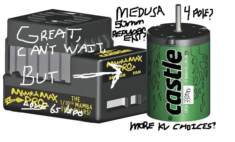 I forgot about the Novak Hv motors, I started out with a 4.5 on my CRT.5 because I had it. It was actually very good and ran cool. I guess that as a replacement for the 50-60mm Medusas these would actually be a decent choice.