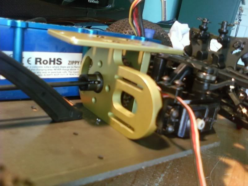 I have the rcbros.com conversion, similar motor mount to rcmikes. if it is in the stock position, you have around 90mm from the plate to end of the chassis so it will fit that way. my motormount is 38mm tall, which puts the middle of it, at 19mm. so if all my math is right, the radius of your motor is 22mm. which means you will have to raise your motormount up 3 mm, or carve room in your chassis(not a good idea) for it to fit.