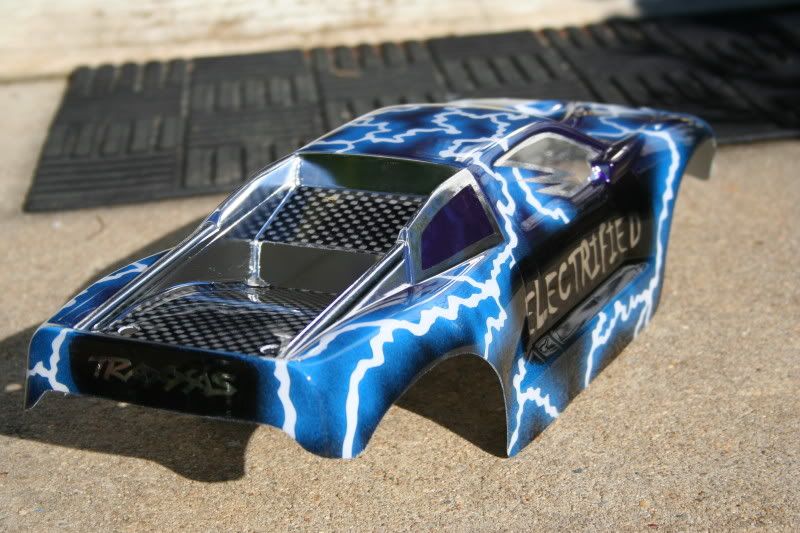 It came out great! There are a few imperfections, but you really can't notice them. :D Everything was hand cut with liquid mask, no vinyl (aside from the included window masks). The only decals are the grill and the lights that's it. :) Not bad for my fist shot at painting lightning/electricity. The pictures do it no justice, it really pops in person!