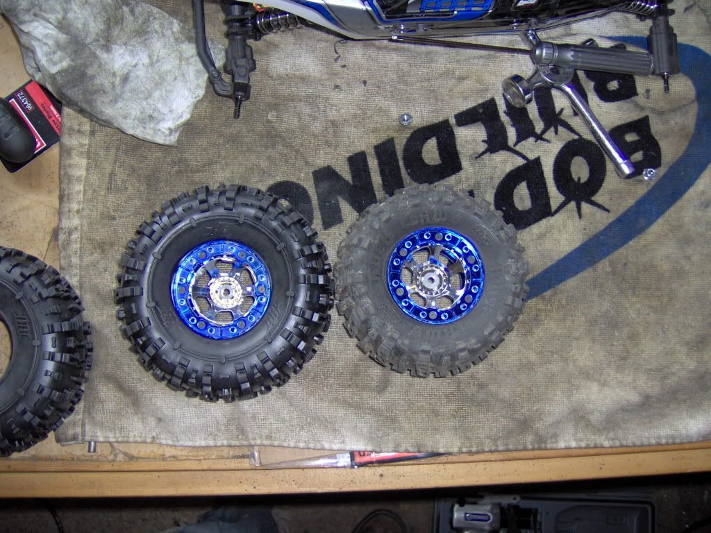 Well I've got the full weights in there, probably more than I need! I put a full pound into each front tire and about 1/3 lb into each rear. Maybe that's a bit excessive but it's damn planted now! Rovers are nice, but not very grippy in the garage. Maybe they need to be broken in.