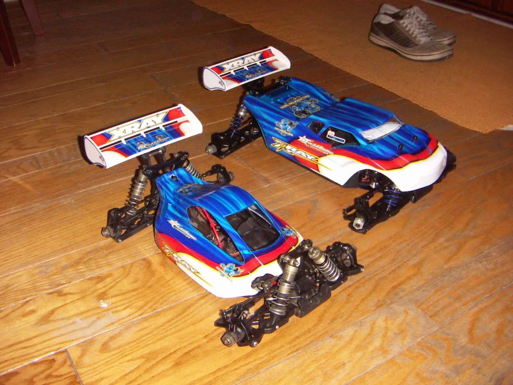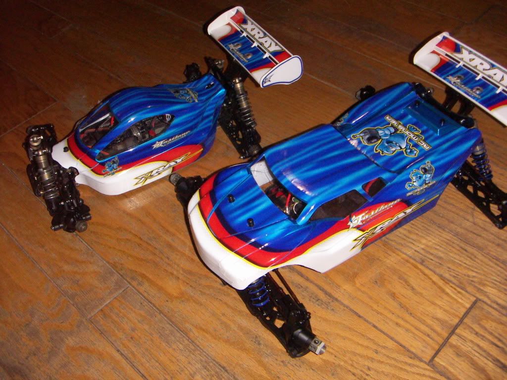 I am 99.99999% sure I am going to get the XRAY XT8 2009 Spec truggy, as well as the XRAY 808'10 buggy, and do like magman did and turn the buggy into an onroad car (I have been wanting one badly). It will have crazy 6S power, and be setup to run on smooth concrete, asphalt, pavement, and even dirt (clay) sometimes. I will most likely swap the buggy's chassis and center-drives out for the longer truggy chassis and center-drives for the added length to bring the buggy into a more scale look and run the more scale "long-wheelbase" bodies like the Corvette C6 body. I was going to get a 1/7 Ofna DM-1 Pro and convert it to brushless, but I really don't like the chassis/shock setup/look that much. I can convert the XRAY 808'10 shock towers and shocks to shorter versions to fit under an onroad body with no problems.