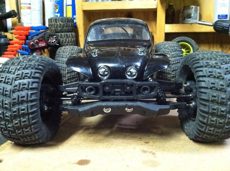 I don't know if you can tell from these pics but the tires actually protrude out further than the front bumper. This also helps when you rock the truck when upside down. They bite into the ground real easy cause they stick out so far.