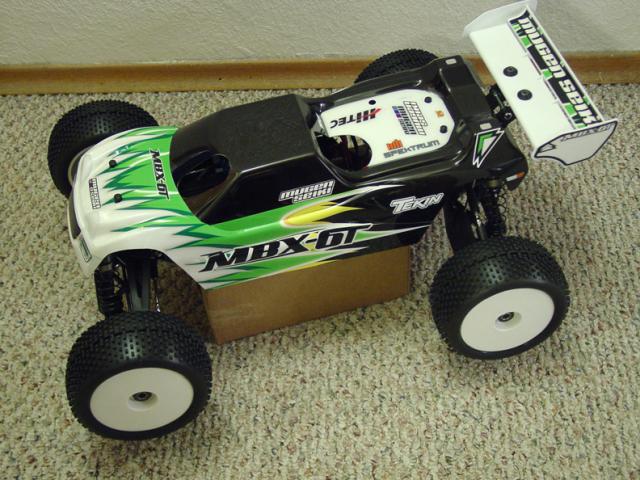This is my first BL conversion. Also my first build of a truggy. Nice quality parts, both Mugen & RCM. Setup is stock (per supplied setup sheet). It was a pain to apply that sticker skin. We'll see how long that lasts.