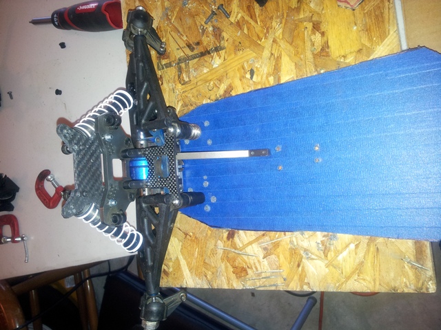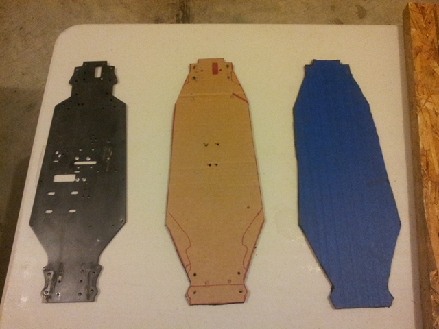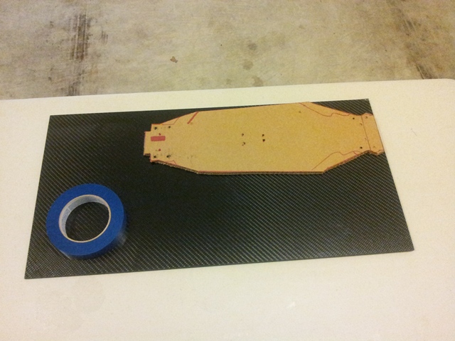 After finishing up my first spring project ahead of schedule, I finally got around to the second; tearing down my Mayhem ST and re-building it on a on off carbon chassis. Once I got the material in and the template mocked up, the first cuts were made. Picked up some super glue to seal up the chassis tonight and the rebuild can happen.