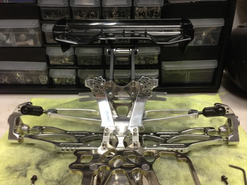Currently working on hinge pins and cleaning up the diffs. Still need some random parts here and there, but I'm working on it. Got the Ti pillow balls and MBX5 wing mount last night