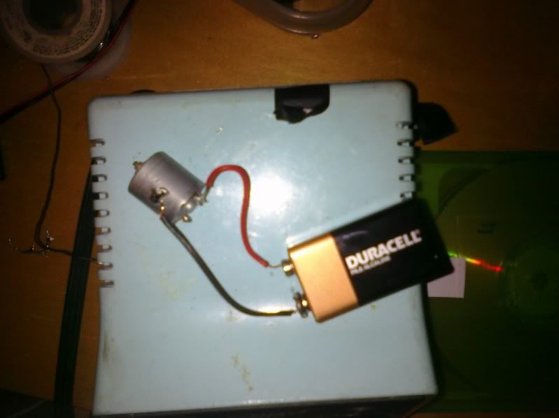 Take an old servo, pull the motor out of it, solder it to a 9v battery like so.