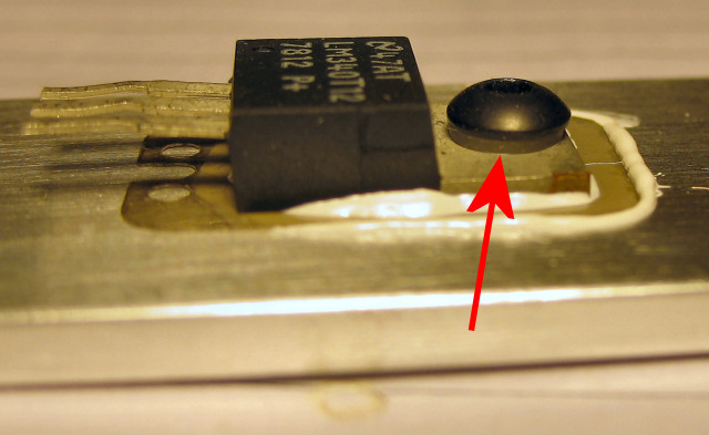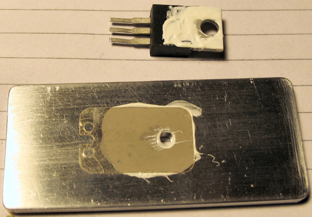 You can see I put some compound on one side of the insulator and pressed it where it needs to go, and put some compound on the regulator. It's OK if you use too much as any excess will squish out (but can be messy).