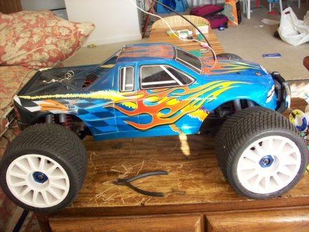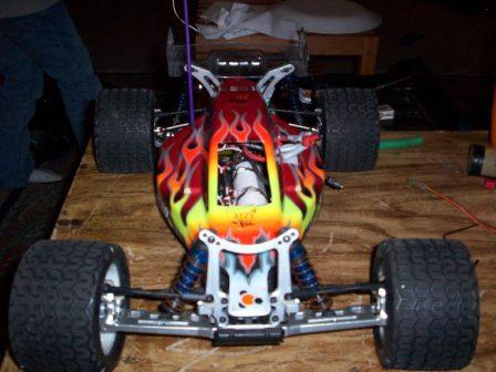 I would rig up some skid plates for the top of your shock towers, because I can tell you right now, they won't last a pack's worth of charge. Unless you set your slipper loose, that thing is going to wheelie so fast you won't believe it. I have experience with that same setup, except you are running 2.5v hotter than I was.