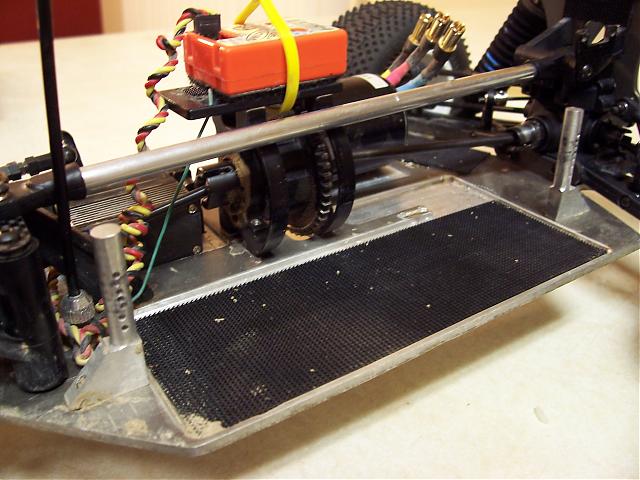Nice chassis. Glad to see it put to good use. I like the aluminum work you have done on the towers. I thought I would post some pics of the battery posts and brace I recently made. I was having problems tacoing the front bone when I lawn dart into the back of a jump. I know they are not as finished as Blacked outs but I just don't have the patience to do all that finish work. By the way Blacked out, is there any news on the extra bones?