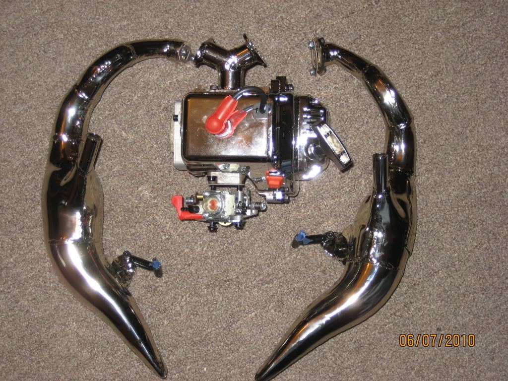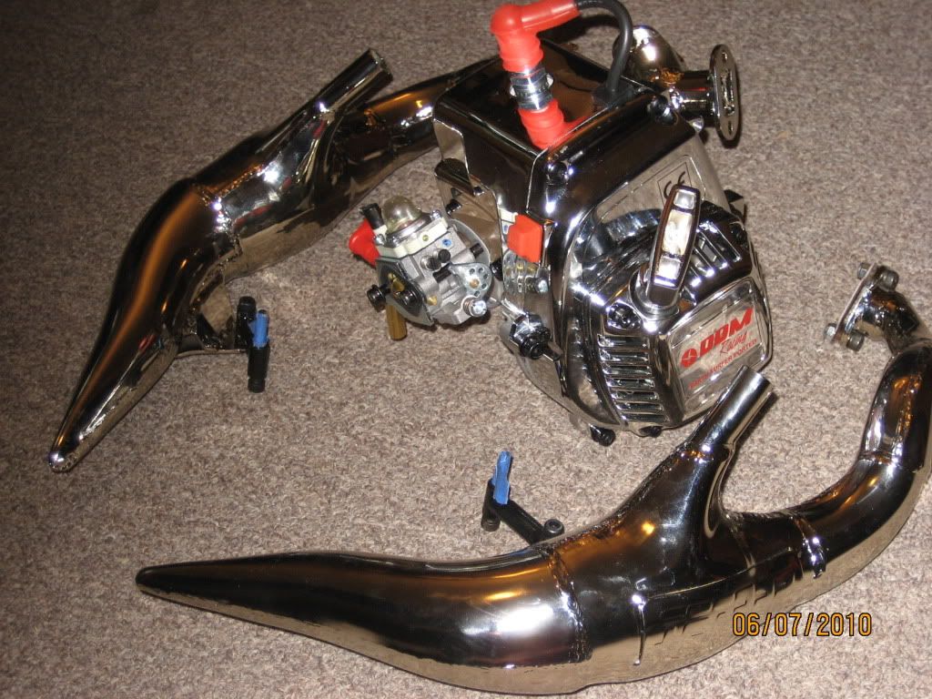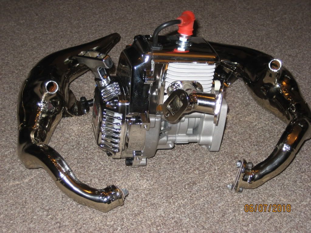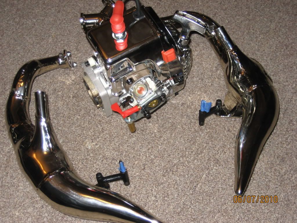 What clutch are you running? If you don't have one get a ceramic clutch. They are expensive but they last that much longer so the cost works out abuot the same in the long run. The advantages are not having to change the clutch so often and when it does die it is much less likely to overheat the shaft and bearings. I say this because a stroked motor with pipes is going to be a lot of grunt and you will go through the clutches fairly quickly.