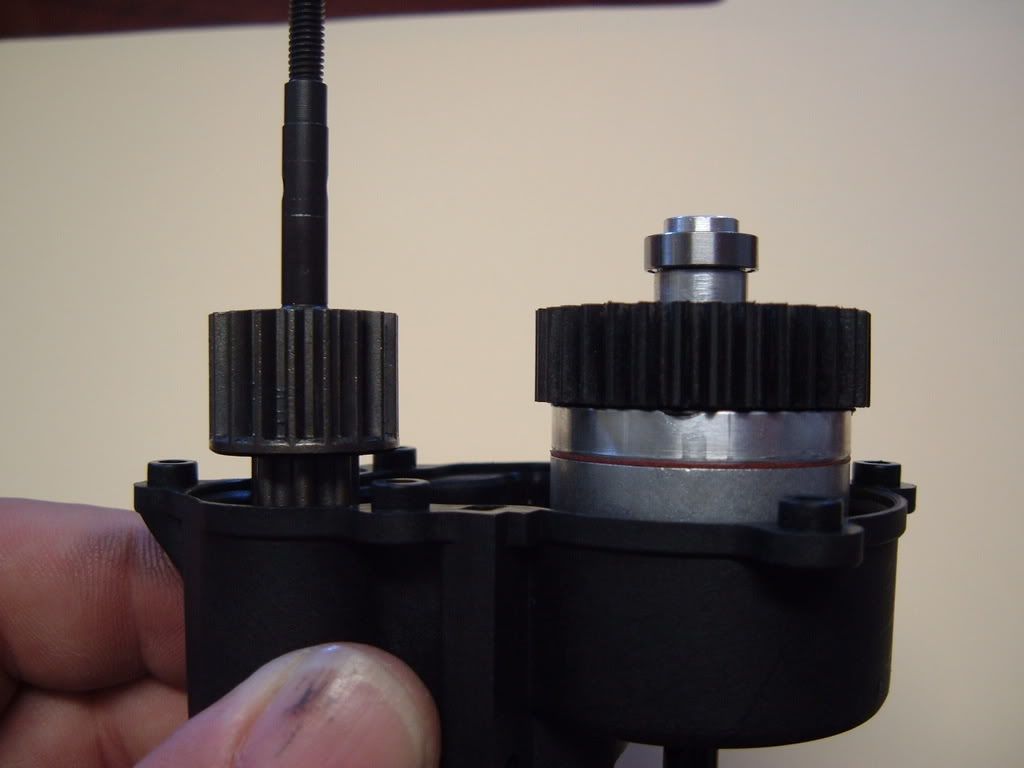 This is necessary due to the mounting issues with the stock lower gear to the adapter. If I can have a gear custom made, I can modify the adapter to place the gear closer to the face of the diff cup, although I may never be able to get it close enough to work without some trimming of the idler. Just not enough room inside the stock tranny case.