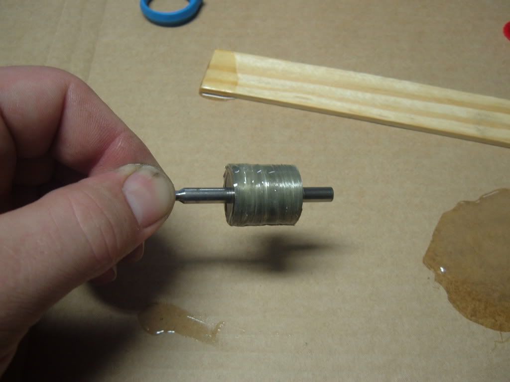 Rotor after application of mixed epoxy and wrap of vectran, I wrapped it as evenly as possible, but the vectran is very fine, and not woven together so it was difficult to make it overlap much: