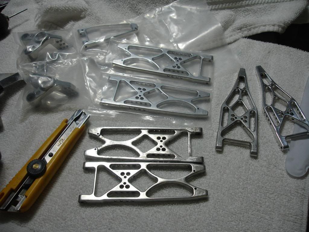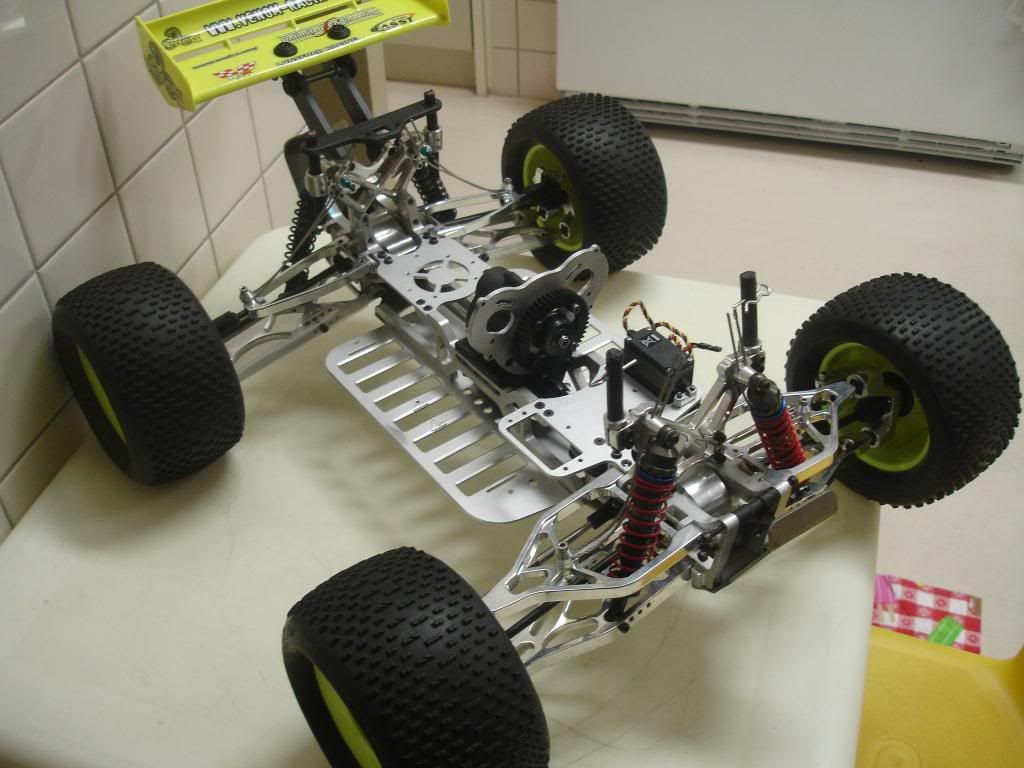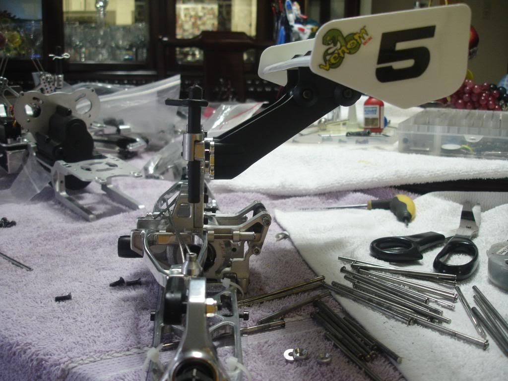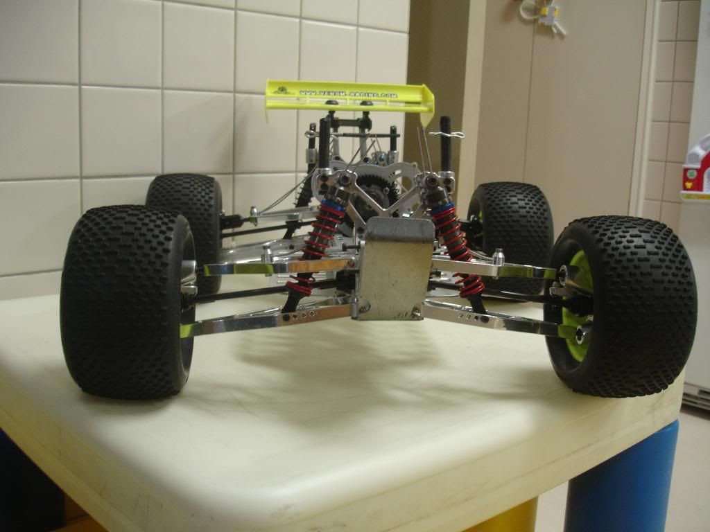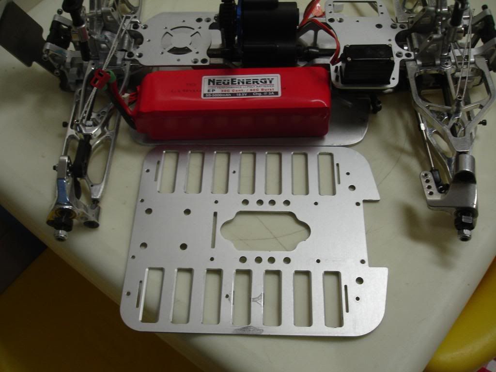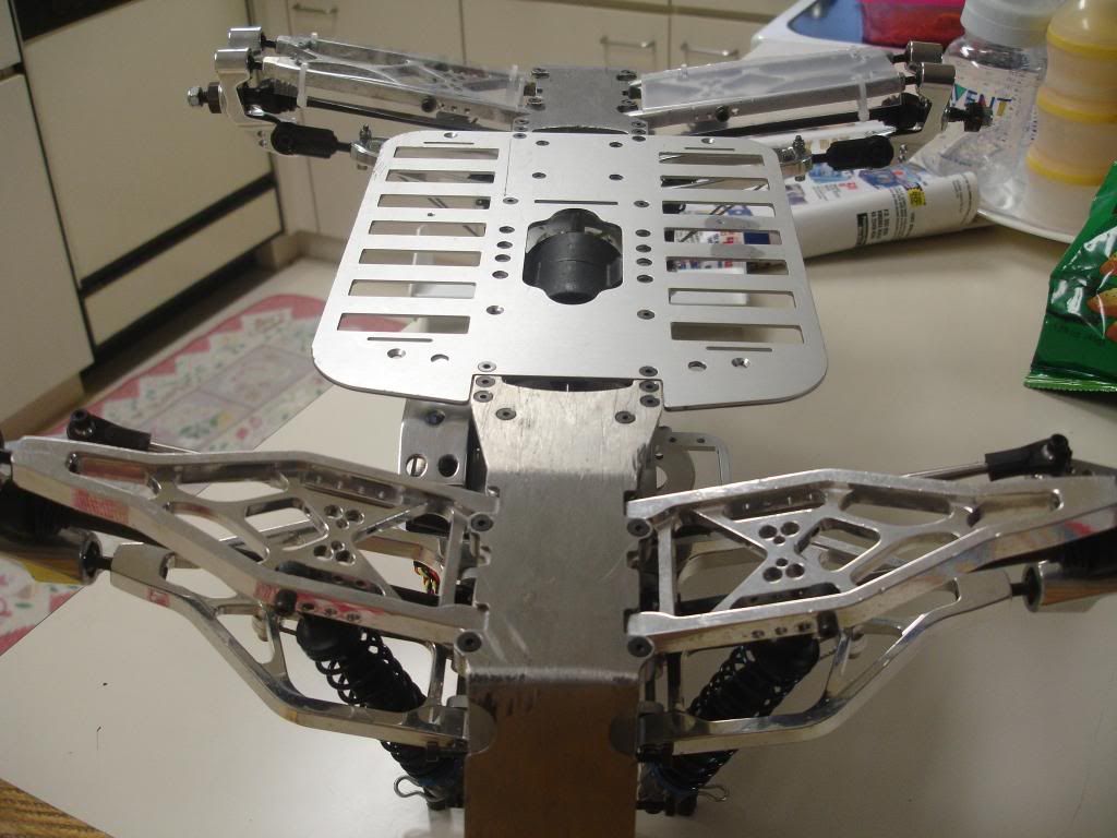 I flip around the tranny so the motor will be towards the rear. I'm still waiting for my UE monoblock for added length. Still waiting for the motor (Medusa 36-60-2000Kv) and batteries from DMA.