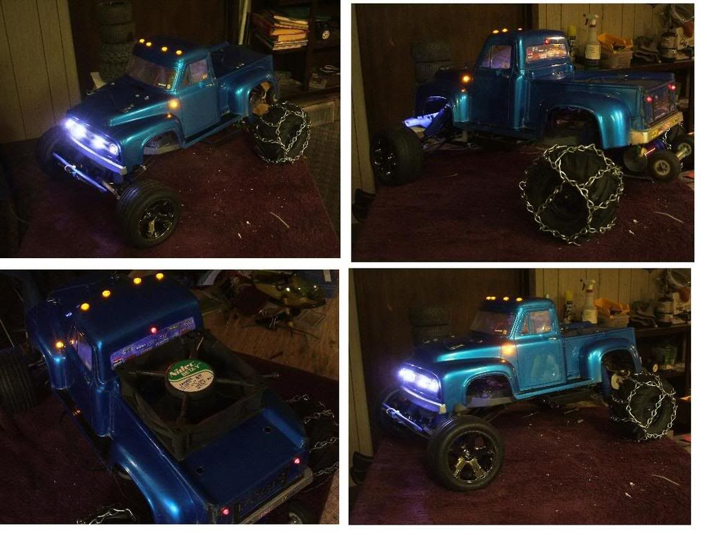 I lightened the midtones up in some of these pictures with it installed in the emaxx. Not so the keen eyes of my fellow RCMers would see I installed the transmission backward or see that I tried to fix it by installing the tires backwards. JK on the tires. That's for better traction in the snow that's on the ground. I lightened them so you could see the emaxx a little it was installed in. When I was removing the tranny to put it in the right way. I thought I would experiment with some reflective aliminum tape. Those are the parting shots for now. I still have some work to do on it. It works just fine. The work is more for appearance and tighter seal around the case then functionality. I have another case on order to play with.