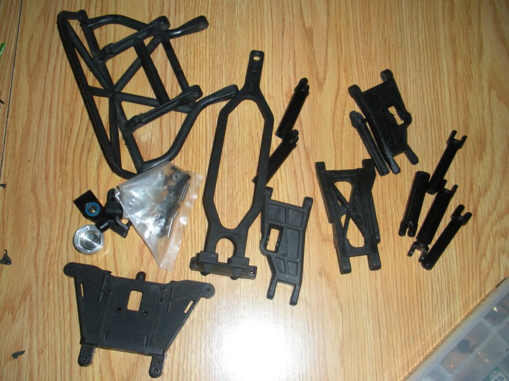 Next is my baby... My slash, It has so much done to it I can't begin.. It is basically UNBREAKABLE with what it has...It has RPM arms all around.. Traxxas rear bearing carriers,STRC front caster blocks, Traxxas big bore shocks on all 4, STRC Nut and bolted hinge pins, 17mm adapters with numerous sets of buggy wheels, Rpm shock tower, Xtreme racing blue aluminum chassis, Rpm skids front/rear. Traxxas wheelie bar just needs wheels..ALso included is the read bumper for a "scale look" will include a bunch of extra parts,Its a roller unless you want the Mamba max.. All it needs is rear body mounts other than that its perfect... It will included all the buggy tires in the picture.. Badlands, street tires, and two sets of pins..