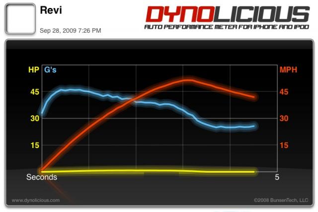 I had this old iPod sitting around and thought it would be fun to try out some auto benchmarking software designed for full-size vehicles. It uses the ipod's built-in accelerometer to measure the rate of acceleration (lateral g's) and thereby determine how fast your car is.