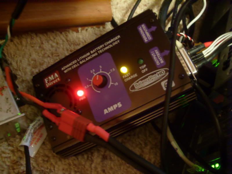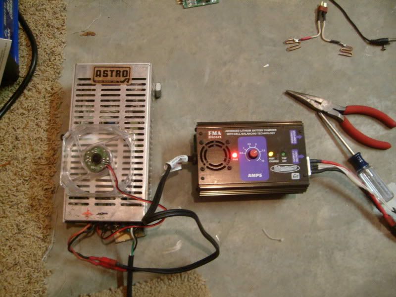 Here is a picture of the charger working last week with teh big 6s pack. I had a take the fan out of the spud gun and place it on the power supply because it was getting hot charging at 7.5a. It barely gets warm now.