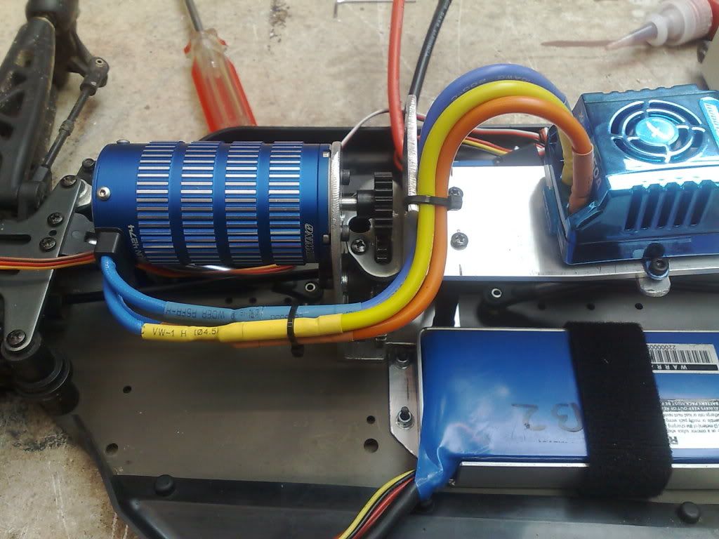 Thanks for that florianz. i have been thinking more & more about moving the motor down to the side of the centre diff, i'm not really that happy about where it is mainly because of the flex i'll get but what you say makes sence about the side to side weight, it's not as important than the low COG.