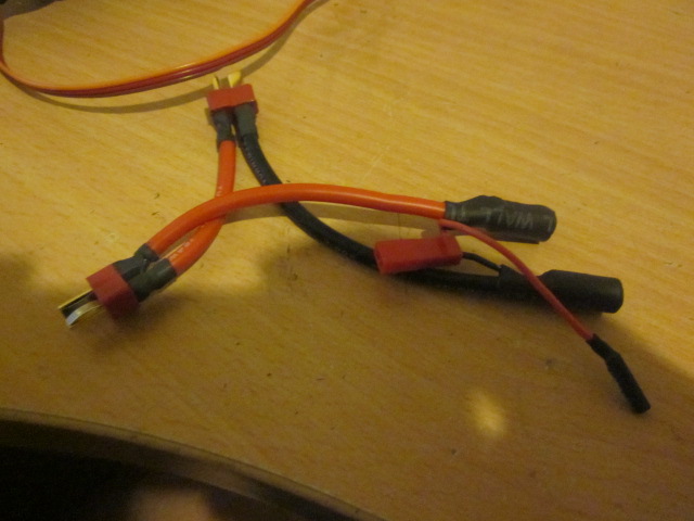 At present as I am only testing on 6s (2 + Protek 6800mah 50C 11.1V Hard Cased Lipos which came with 12AWG wire and Deans fitted), I have a series lead done up with the 6.5mm bullets out, and the 2mm no spark on the + side. Also have a Jst plug from the + and - (so full 6s) to power my CC Bec Pro should I decide to use it (in which case I have a servo extension for the esc with the red wire removed)
