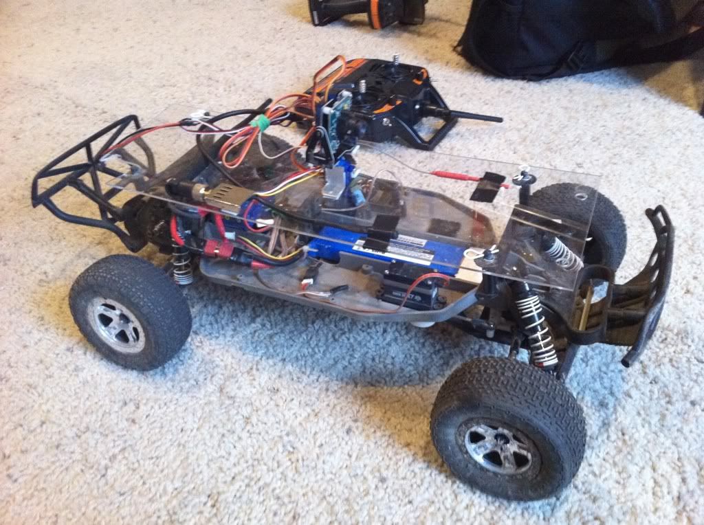 Camera on a pan/tilt mount, running 4 channels so I can control camera and truck on a airplane radio.
