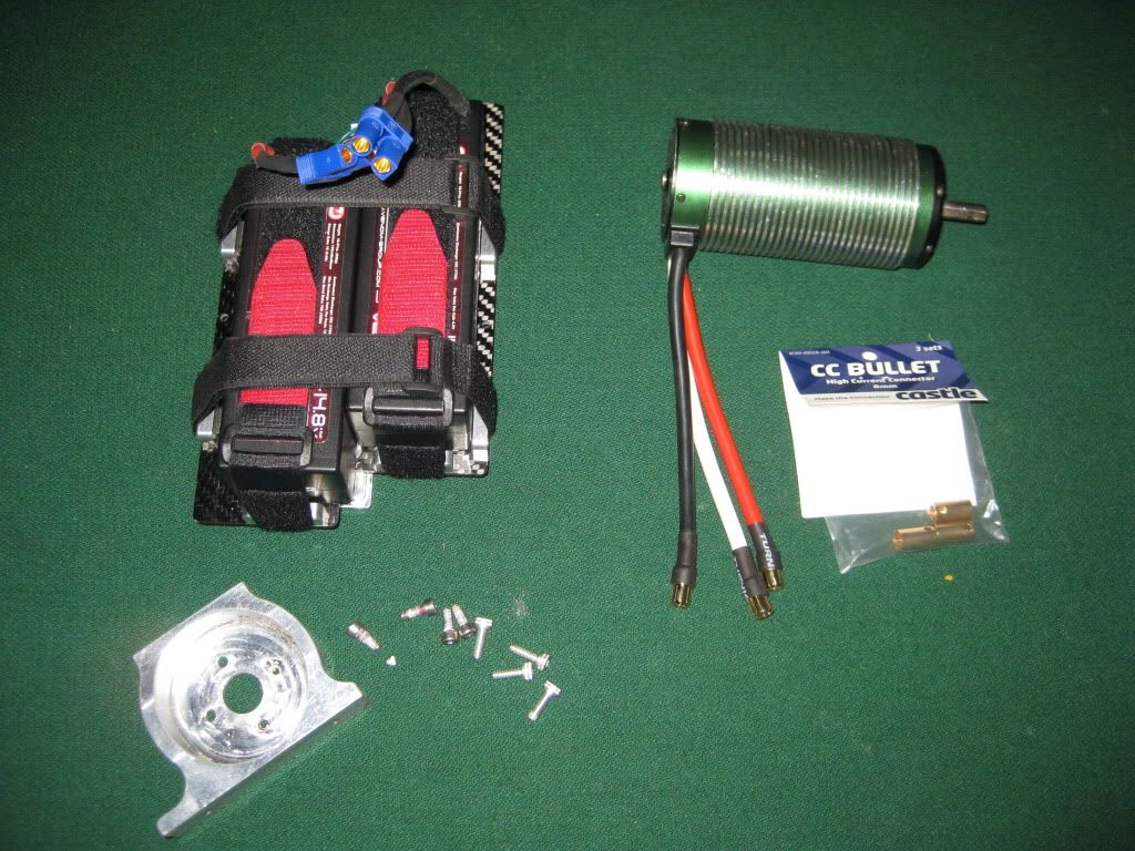 Next up is the best conversion setup out. The RCMonster BL5 set. It allows you to keep mechincal brakes which is almost a necessity to keep motor temps down and would allow you to use a boat or air esc since the motor would not be doing the braking. Also includes two MOD 1.5 pinions, 14t & 16t.