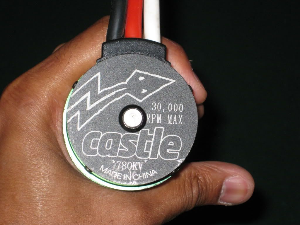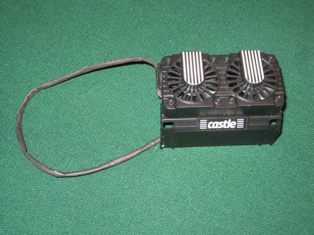 First up is the humongous Castle Creations 2028 1/5 brushless motor. Its used, but it very good shape. Worst looking part on it is the shaft which shows the normal wear from pinion grub screws. I just soldered on brand new CC 8.0mm bullets and I'm including the other matching half for you to attach to the esc of your choice. Motor also includes the dual fan cooler.