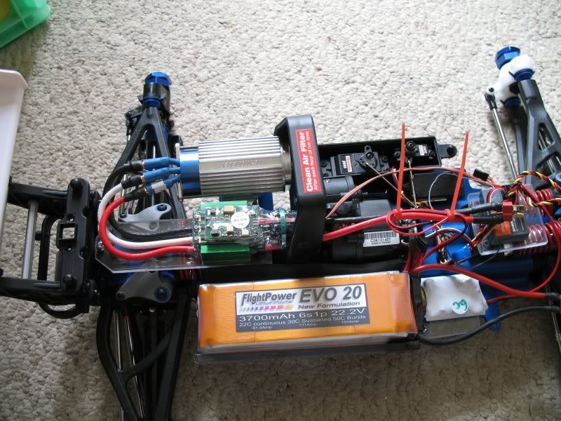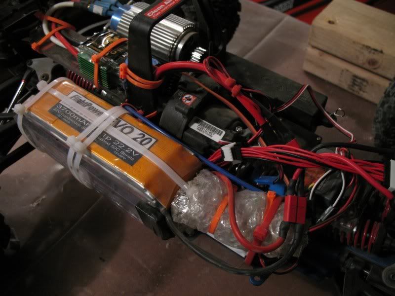 I am surprised that you can't wheelie on demand. Are you sure the slipper is set tight enung? That thing should be able to just about flip over from the torque. I was running a 10XL on 14 cells and it would easily flip if I wasn't careful - and that's with the ESC set to soft start power! I know you are using the extended chassis, and that should definitely make it harder to do, but I still think it should wheelie like mad!