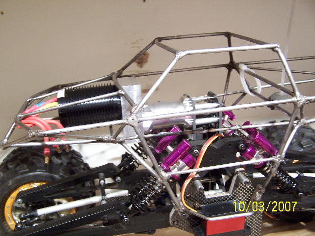 MIG welded piano wire roll cage under the body (this would add a few more ounces if I go with it).