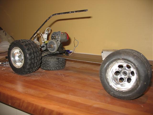 These photos show the first tube welded on and the wheels mocked up.