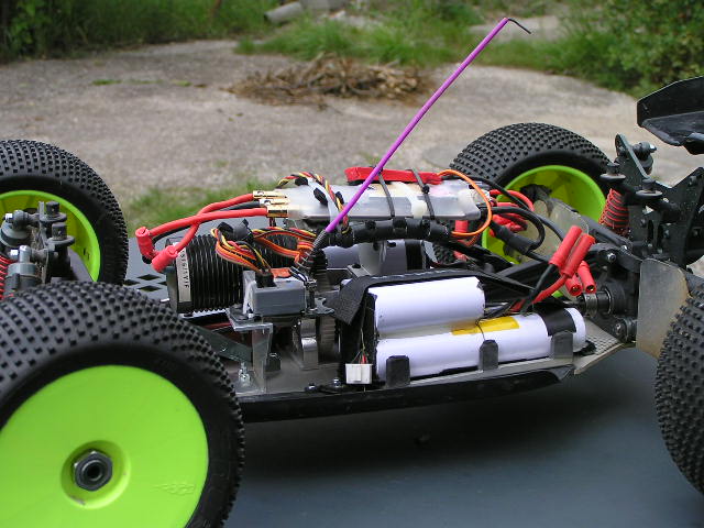 A few months ago he drove his MBX5T with a Neu 1515/1Y (2200kv), an MGM 16018 and 6s2p A123. During hot sommer days this setup did run rather hot. He then choose to switch to a HV setup and switched to a Neu 1515/2Y (1100kv), a Schulze 32170 and 11s1p A123. The rather big Schulze controller stays very cool, motor runs cooler too.