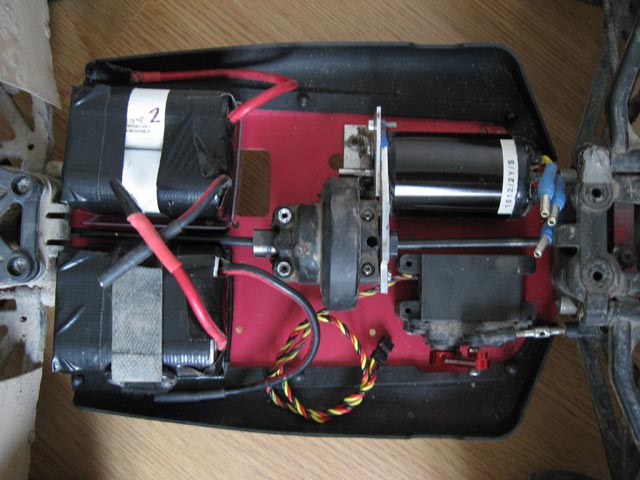 5s1p pack at the rear, receiver and BEC box beside the centerdiff and servo with Eagletree logger on top of it at the front of the car