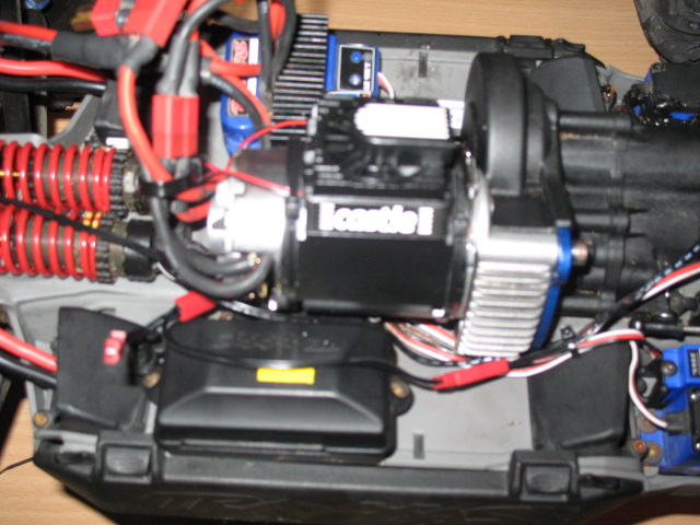 Yeah see ordinarily I'd put an Alloy Heatsink / Fan on it, but the Dewalt motor is huge, ie larger than a Titan 775 Brushed Motor, so I have been unable to find a metal heatsink that actually fits, hence the Castle option (and it just fits at a pinch, with a pair of very tight cable ties!)