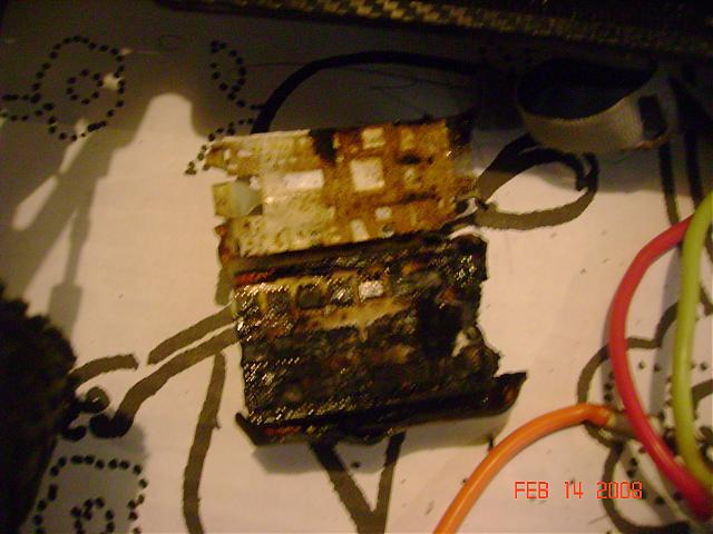 . That's when I didn't hesitate and went running towards the truck took the body off and unplugged everything. The flames happened very fast and you can see it almost burned the body and the wires from one of the packs. The Velcro straps melted in a couple of spots. Man, I was loving this controller as all I heard from others was the horrible stories of it catching on fire. So if you have a Schulze and your vehicle rolls backwards, don't hit the throttle. Wait until it comes to a complete stop