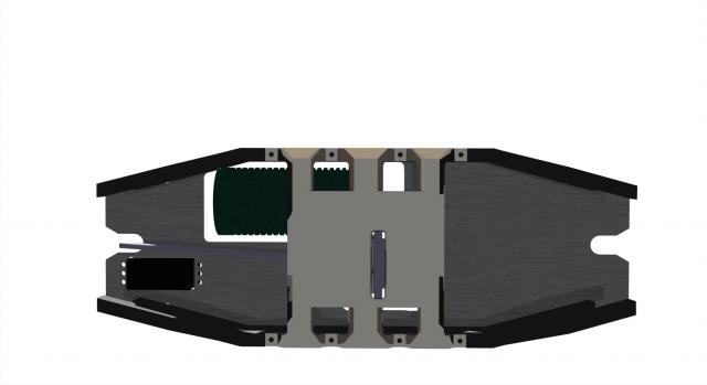 Finally a bit of an update on the design. I decided to try a drop down center plate, and reversed the center diff and motor to get more of the cg to the front. Had to mock up the servo and front shaft to make sure there was clearance. Looks dooable right now. The drop is only a 1/2 inch - could go a little more. My original idea was to get it low enough that nothing was sticking up through the top - but that now seems to be a far fetched idea. I used the muggy center diff set up (1.806" tall).