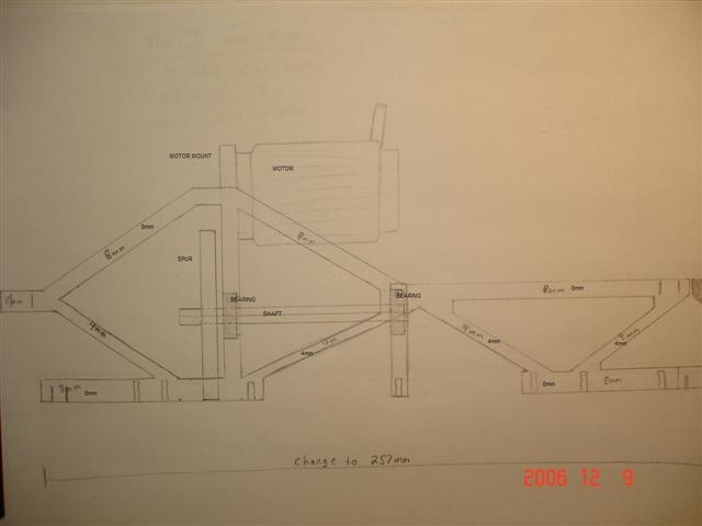This is the third revision upper chassis sketch, just thought I'd post it up before i put it on CAD. The left side is the front, and right is rear. the brace is made from 6mm thick 6061-T6 alum, it will be milled to varying widths as you can see.