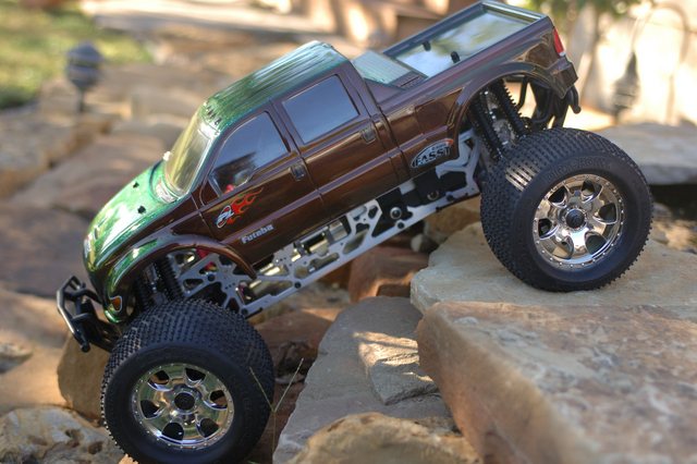 The body is a proline F650 lst sized. I was told that it shouldn't wheelie that much with the diff setup, I have the wheelie bar just in case. Oh yeah and it's painted with parma fasflip maple