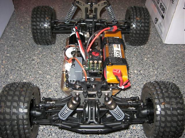 Here's the bottom...I just used two screws to mount the tray and added Velcro to the inside bottom of the tray and botom of the battery (adds some cushion and keeps it all together). The bolt pattern with the tekno tray was a perfect match on the ext chassis.