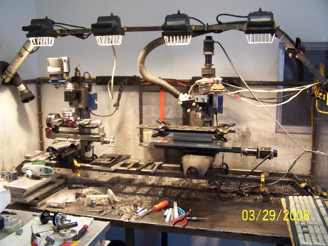 Anyway, here is a portion of my shop. I know, I know, it is messy. Anyway, this is a Taig 3 axis CNC (soon to be 4 axis) and a Taig 5 axis manual mill. I also have a mig welder, band saw, lathe, belt sander, drill press, etc.