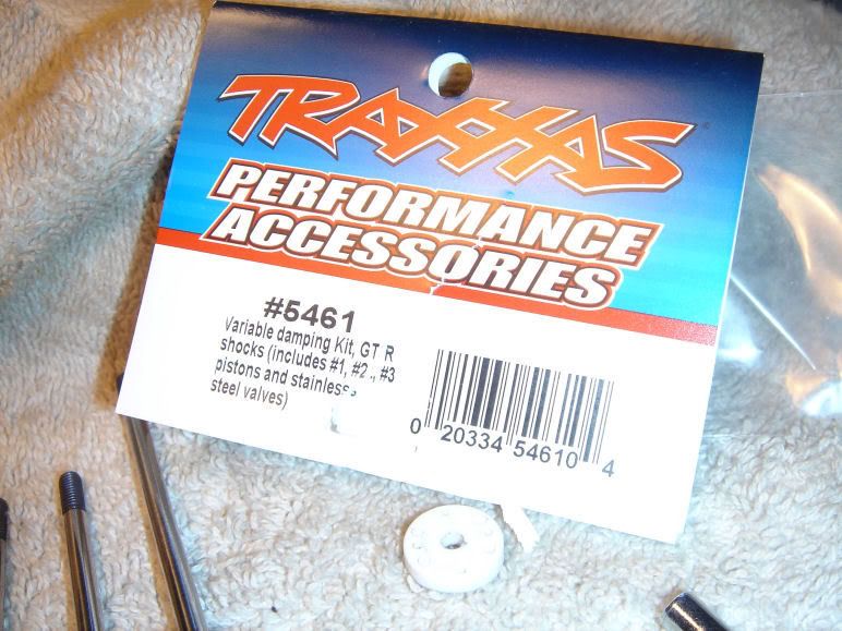 Stock Z-Car shock pistons with Traxxas variable valve added. You can see the stock Z-Car valve with holes in it.