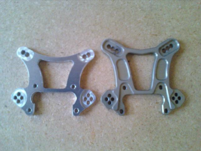 I also made a new motor/servo mount as seen in the second pic. The third pic is just of the front shock tower I made next to the stock one.